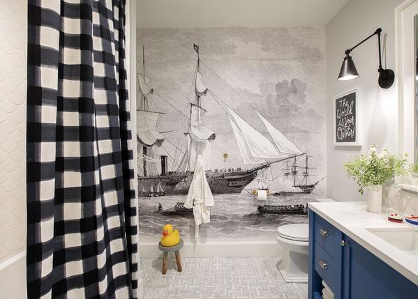 All aboard! Set sail on this vintage nautical themed mural, perfect for a little one's playroom, bedroom or bathroom. Watch your child’s imagination grow alongside this classic ship, from sailing through storms and fighting pirates to hunting for shiny golden treasure.